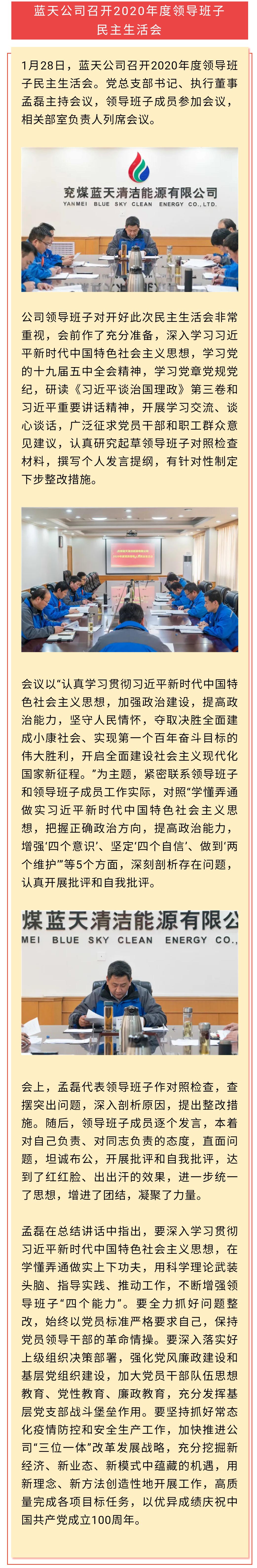 蓝天公司召开2020年度领导班子民主生活会